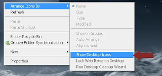 2.) In the Sub-Menu, Click on the Show Desktop Icon to uncheck. And now you will see all icon is gone.